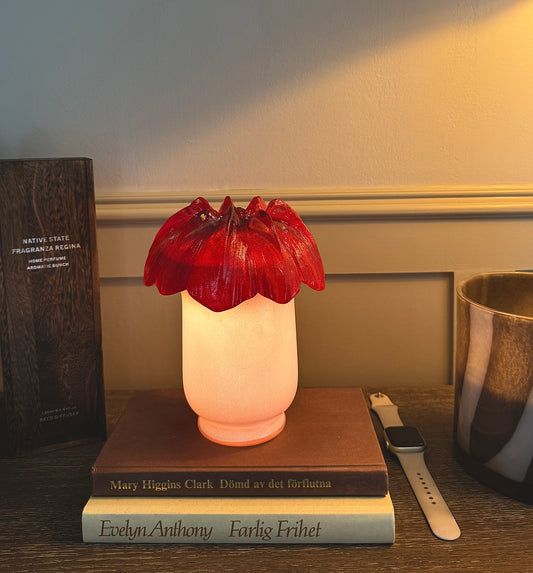 Dekorativa sladdlösa bordslampor i glas, där värme och elegans möts.