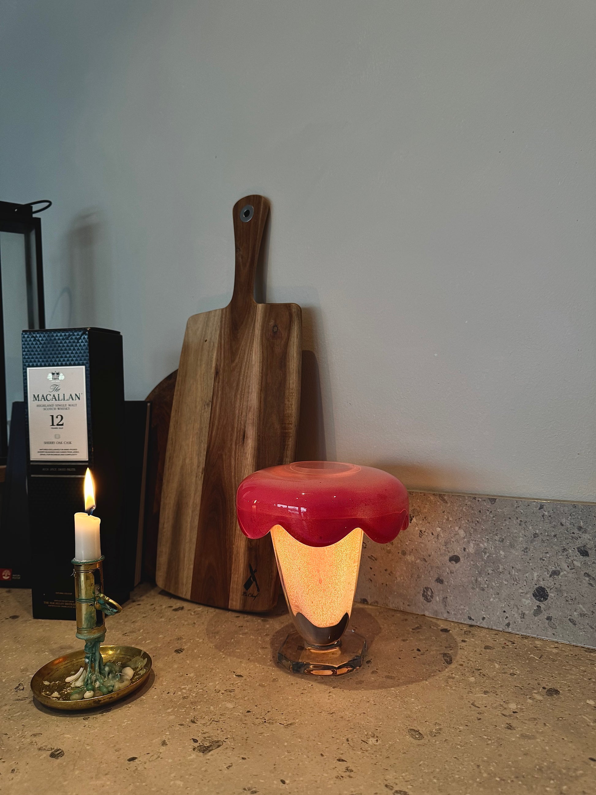 Gardenia tillhör kollektionen Recycle som innebär att glaset är återbrukat som BRILLIANT ART har gett färg och ett nytt "lysande" liv. Bordslampan ger ett behagligt och mysigt ljus framåt mörka kvällar, också en väldigt vacker dekoration i hemmet mitt på ljusa dagen. Eftersom lampan är sladdlös är den smidig att placera på olika platser i hemmet och dessutom perfekt för de platser som saknar eluttag. Pryd ditt hem med en personlig och unik lampa i bokhyllan, på fönsterbrädan, köksbordet eller sängbordet, låt fantasin flöda.