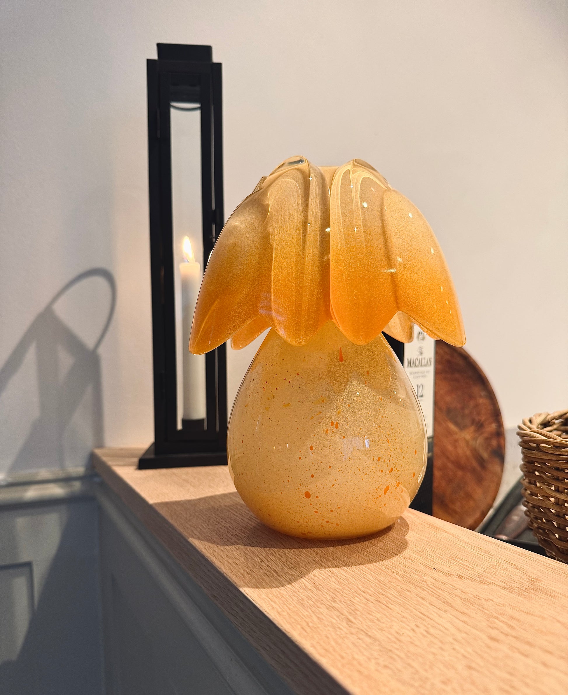 Gloriosa tillhör kollektionen Recycle som innebär att glaset är återbrukat som BRILLIANT ART har gett färg och ett nytt "lysande" liv. Bordslampan i gedigen kristall från Orrefors (lamphuvudet) som ger ett behagligt och mysigt ljus framåt mörka kvällar, också en väldigt vacker dekoration i hemmet mitt på ljusa dagen. Eftersom lampan är sladdlös är den smidig att placera på olika platser i hemmet och dessutom perfekt för de platser som saknar eluttag. Pryd ditt hem med en personlig och unik lampa i bokhyllan, på fönsterbrädan, köksbordet eller sängbordet, låt fantasin flöda.
