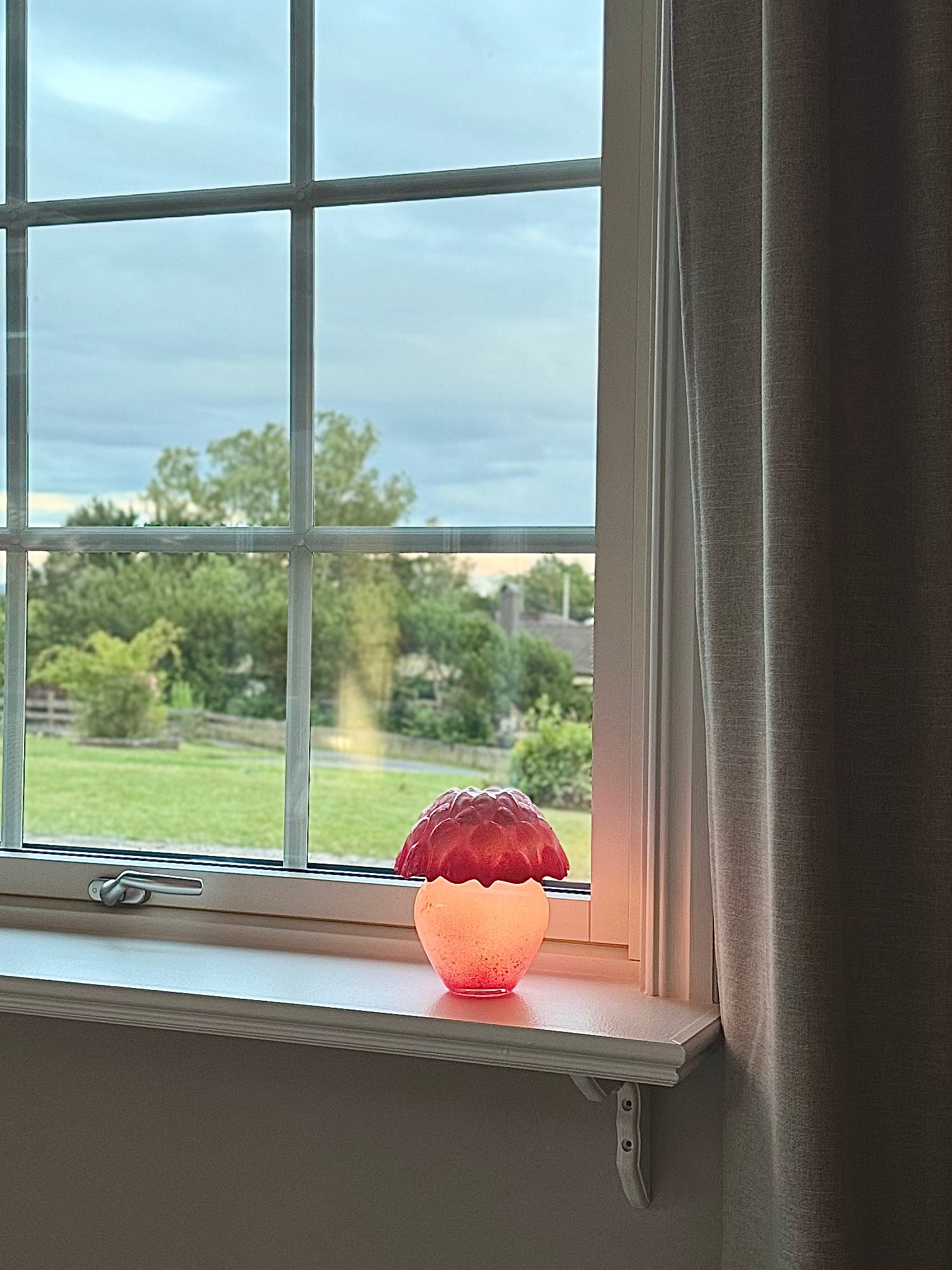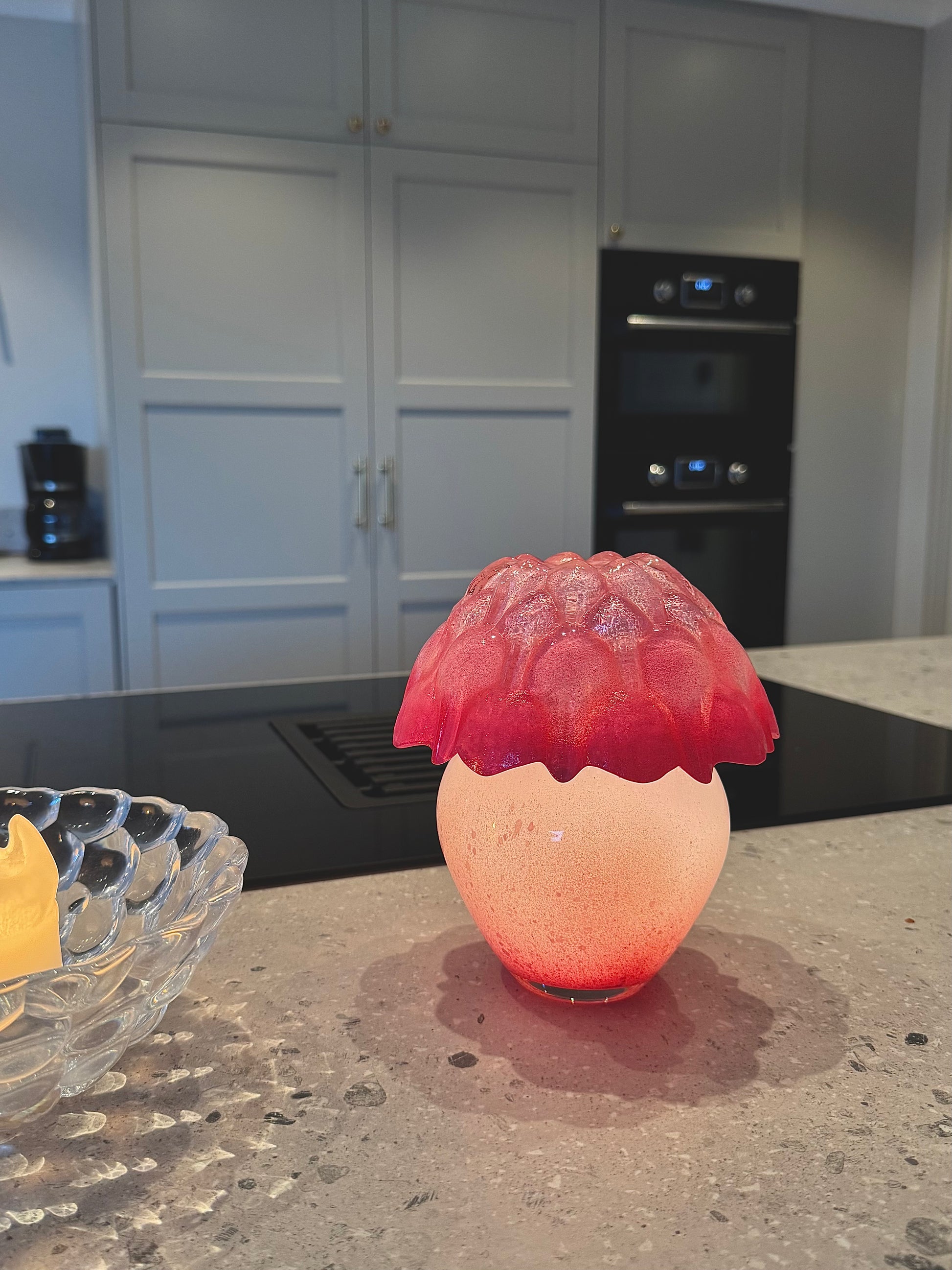 Pink Peony tillhör kollektionen Recycle som innebär att glaset är återbrukat som BRILLIANT ART har fått färg och ett nytt "lysande" liv. Bordslampan ger ett behagligt och mysigt ljus framåt mörka kvällar, också en väldigt vacker dekoration i hemmet mitt på ljusa dagen. Eftersom lampan är sladdlös är den smidig att placera på olika platser i hemmet och dessutom perfekt för de platser som saknar eluttag. Pryd ditt hem med en personlig och unik lampa i bokhyllan, på fönsterbrädan, köksbordet eller sängbordet, låt fantasin flöda.