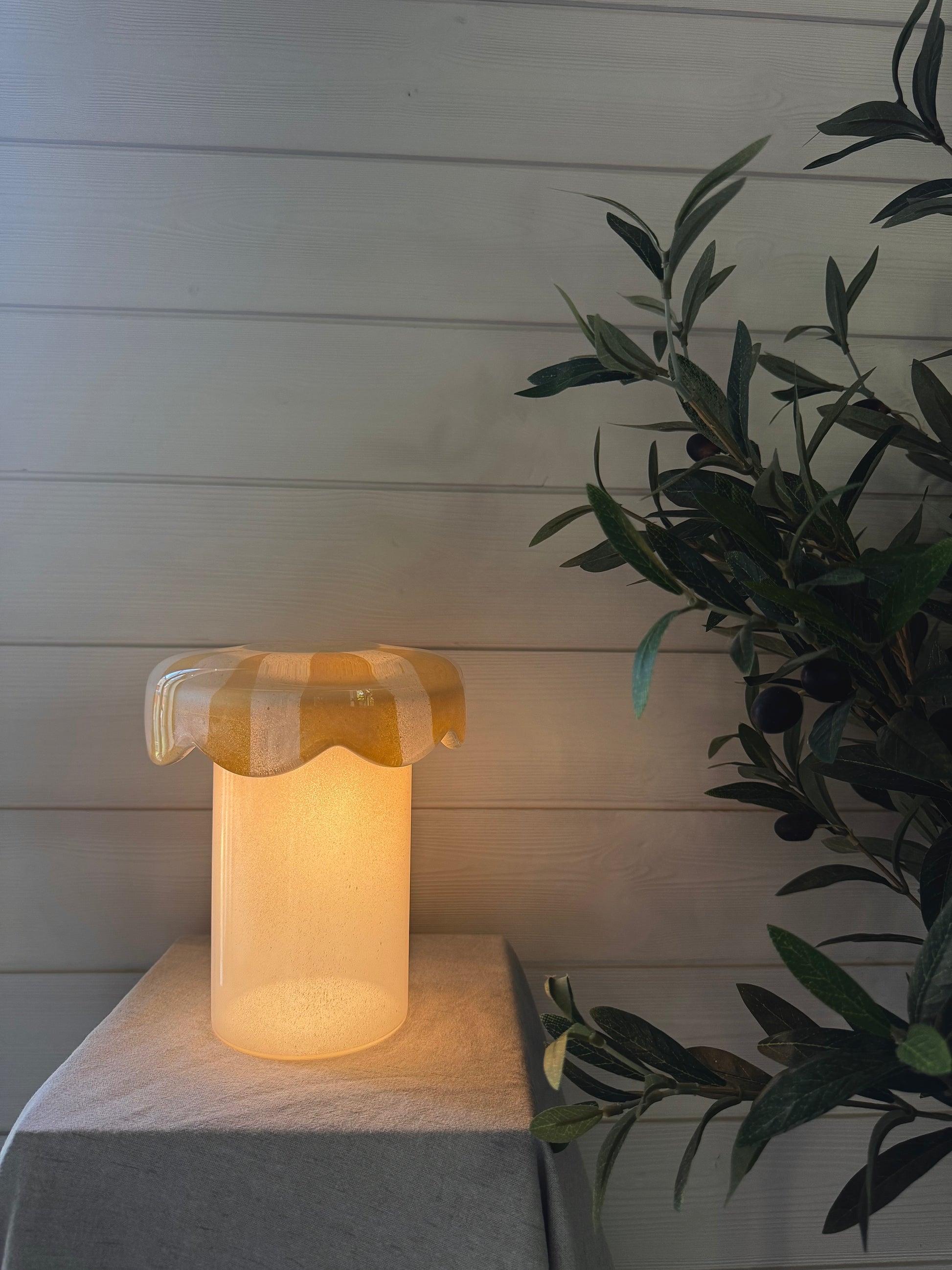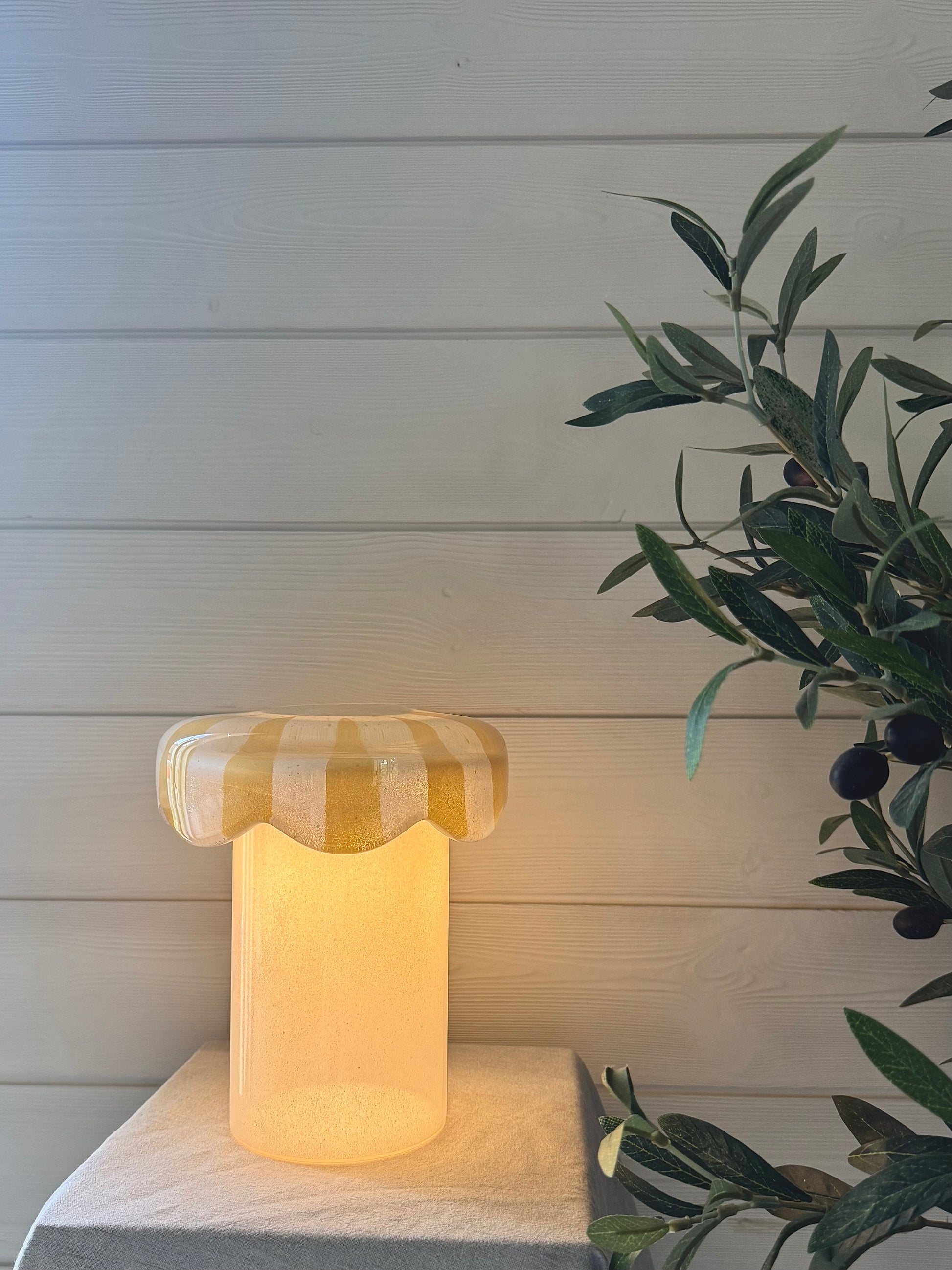 Det finns även ett batteri i kontrollen som enkelt byts ut i framtiden. Eftersom lamporna målas för hand är varje del unik & egen, därför kan det förekomma mindre skiftningar i färg och mönster.