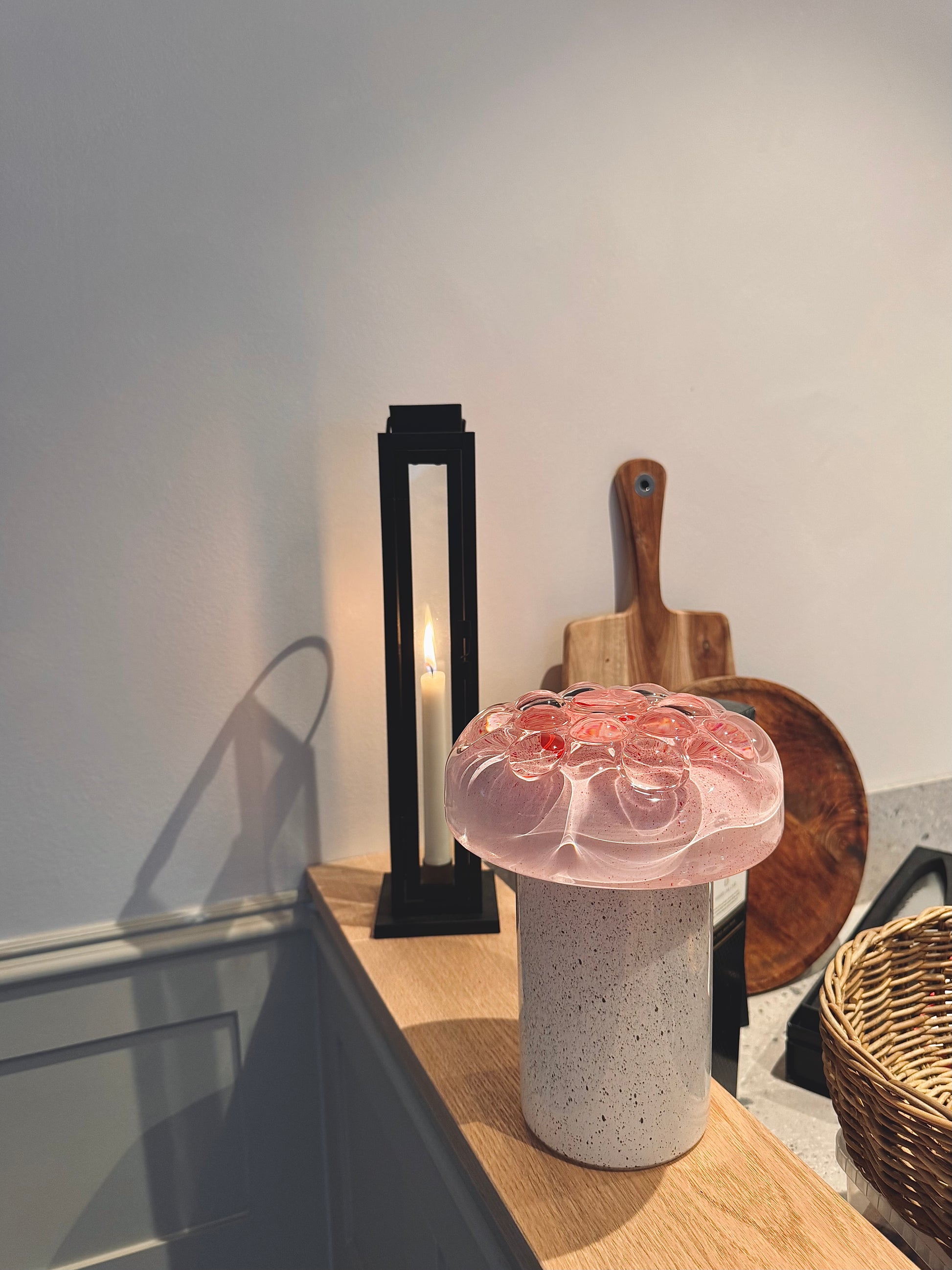 Strawberry bubbly tillhör kollektionen Recycle som innebär att glaset är återbrukat som BRILLIANT ART har gett färg och ett nytt "lysande" liv. Bordslampan ger ett behagligt och mysigt ljus framåt mörka kvällar, också en väldigt vacker dekoration i hemmet mitt på ljusa dagen. Eftersom lampan är sladdlös är den smidig att placera på olika platser i hemmet och dessutom perfekt för de platser som saknar eluttag. Pryd ditt hem med en personlig och unik lampa i bokhyllan, på fönsterbrädan, köksbordet eller sängbordet, låt fantasin flöda.
