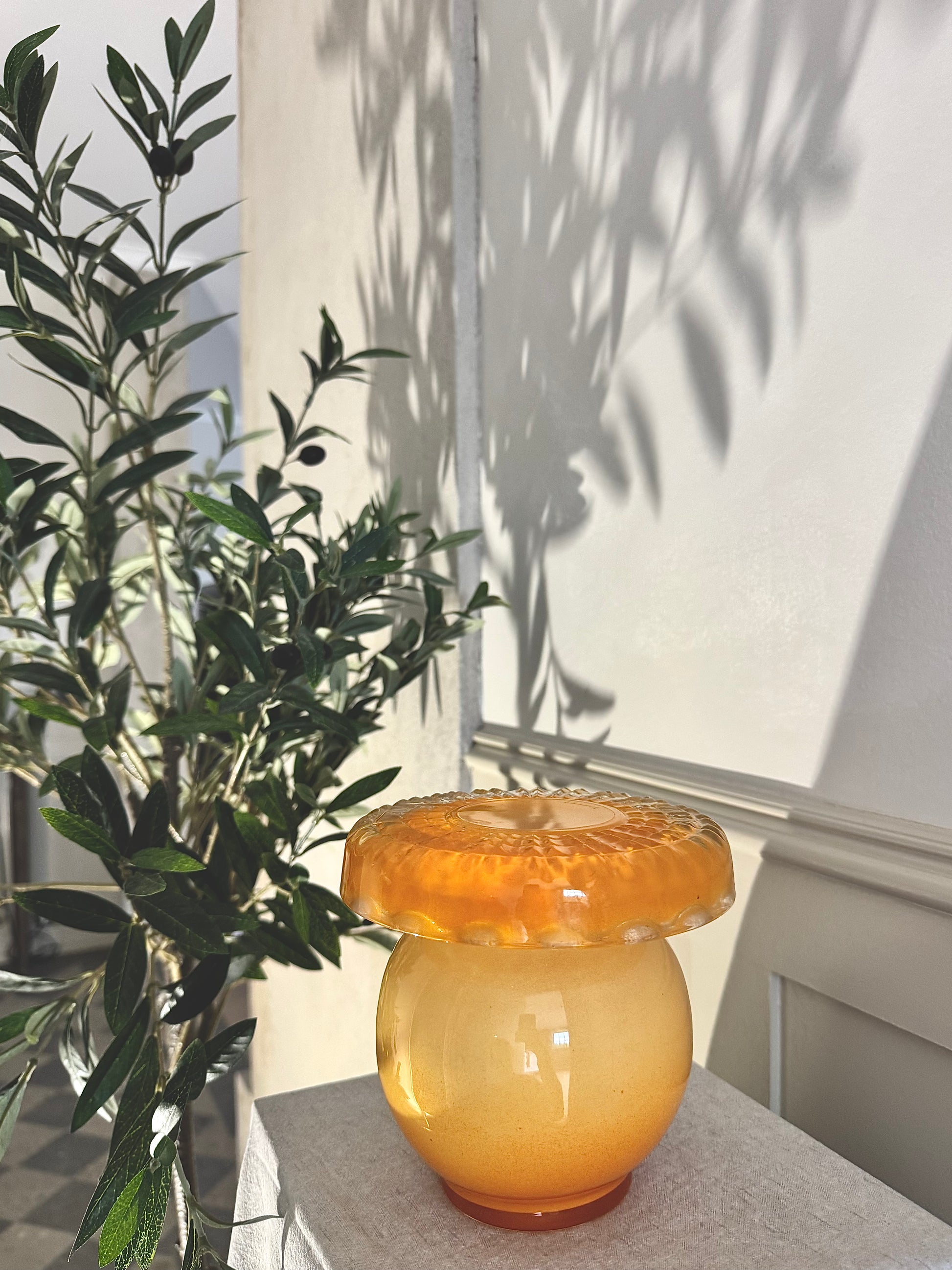 Tulip Yellow Wing tillhör kollektionen Recycle som innebär att glaset är återbrukat som BRILLIANT ART har gett färg och ett nytt "lysande" liv. Bordslampan ger ett behagligt och mysigt ljus framåt mörka kvällar, också en väldigt vacker dekoration i hemmet mitt på ljusa dagen. Eftersom lampan är sladdlös är den smidig att placera på olika platser i hemmet och dessutom perfekt för de platser som saknar eluttag. Pryd ditt hem med en personlig och unik lampa i bokhyllan, på fönsterbrädan, köksbordet eller sängbordet, låt fantasin flöda.