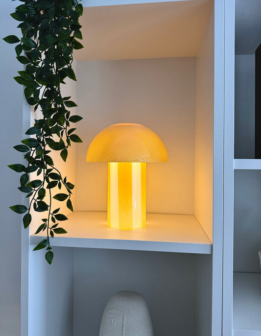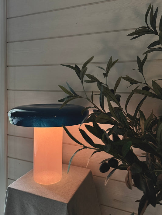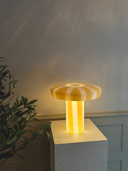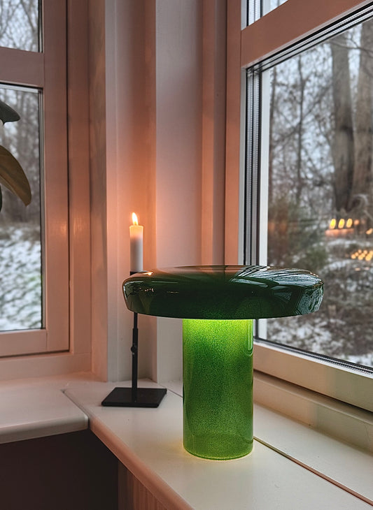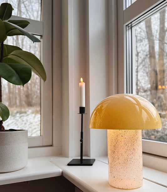Dekorativa sladdlösa bordslampor i glas, där värme och elegans möts.